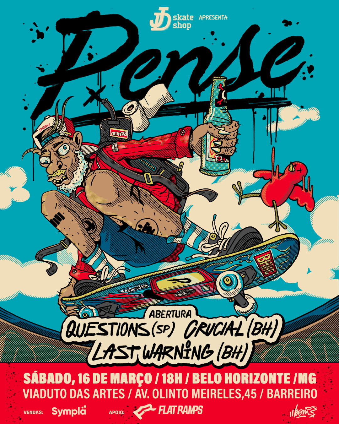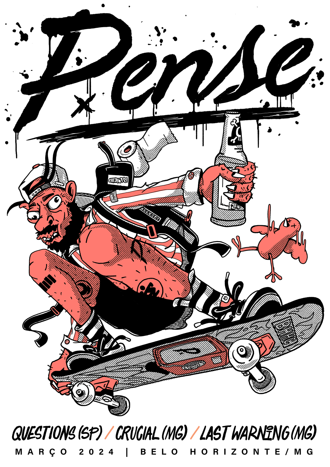 Illustrated poster made for Pense, a hardcore band from Belo Horizonte, Brasil.